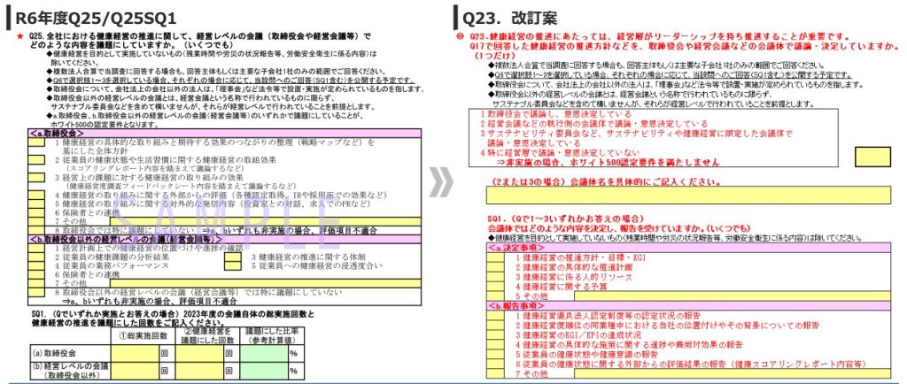 令和7年度健康経営度調査票(素案)の主な変更点・検討点