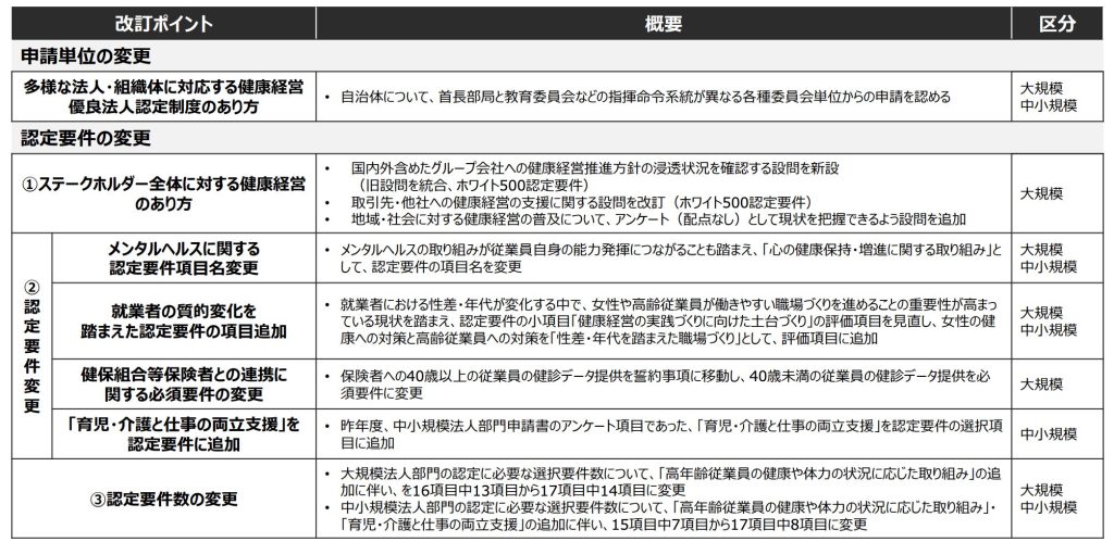 令和7年度の健康経営優良法人認定制度において、調査票および申請要件に複数の重要な変更点が導入されました。