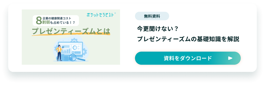 プレゼンティーズム対策ついてをまとめた資料もダウンロードいただけますので、合わせてお役立てください。